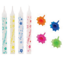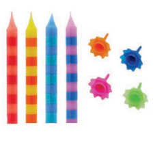 50 VELAS Y PORTA-VELAS RAYAS COLORES